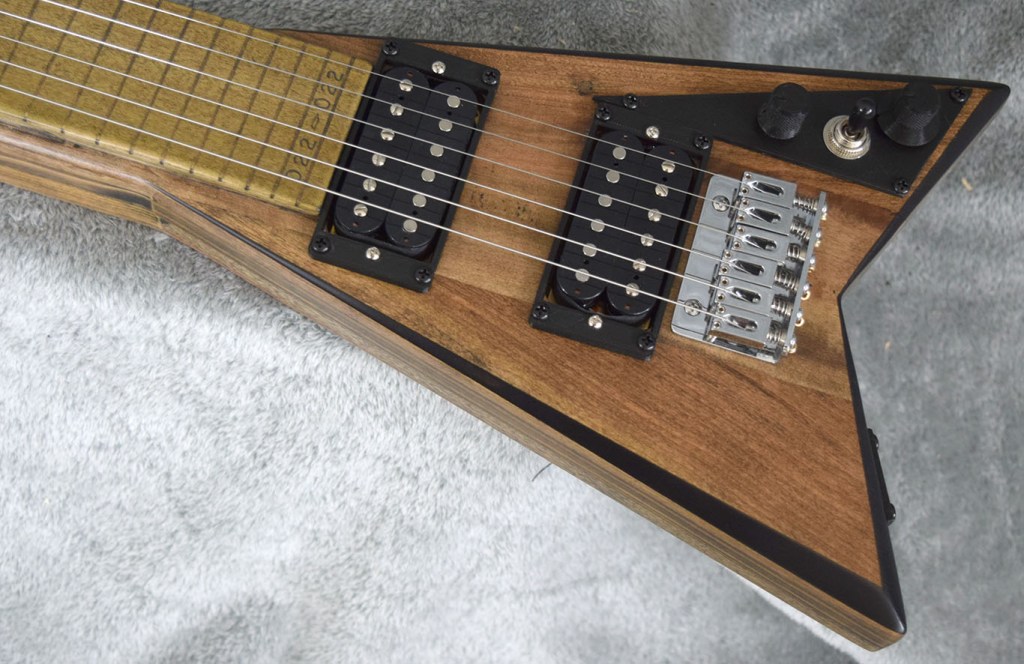 Rocking with top mounted controls adding new style and ease of access to mods, this ShannonSteel merges charm and sound. The dual humbucker with tone makes it easy to obtain that sound to fit your style.