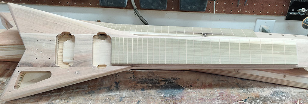- 2 New Custom 8 String Lap Steels Available Now!Our latest lap steels are now available on our Reverb store. These steels have a lots of extra details including custom wood binding, natural wood finish that makes the grain pop, and a more common scale length. The new 22.5-inch scale allows higher tuning with lower tension on the strings that help keep the stringContinue reading “2 New Custom 8 String Lap Steels Available Now!”