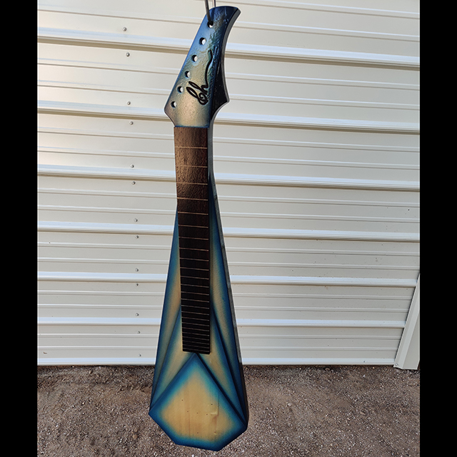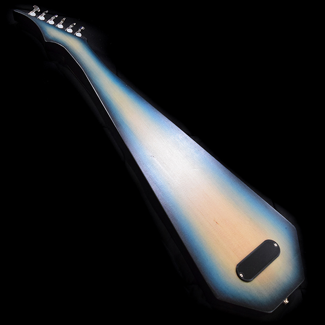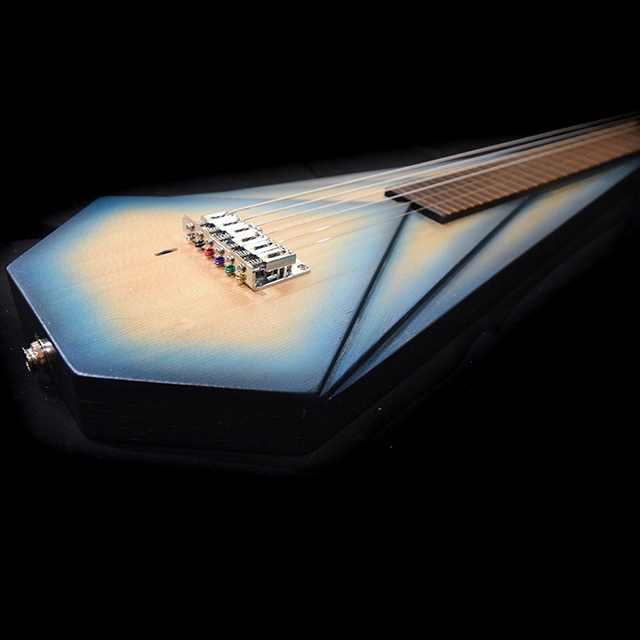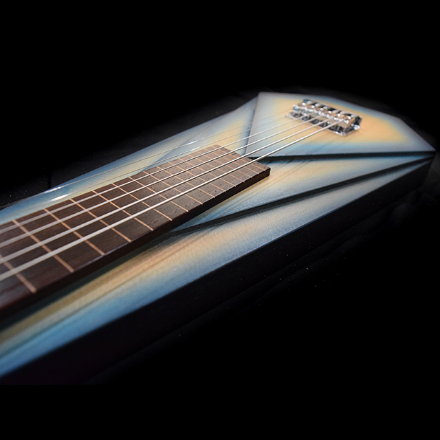 Born of pale spruce and streaked lace wood, this acoustic lap steel hums like a desert wind cutting through an empty canyon. Its voice is dry, haunting, and wide as the horizon—each note ringing out like boot steps on a wooden porch at sundown. Slide across its strings and you can almost see the dust rise, hear the creak of a saloon door, and feel the long pause before a final showdown, where the music speaks louder than any gun ever could.
