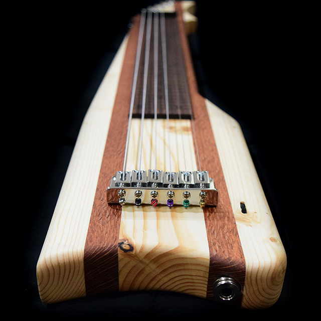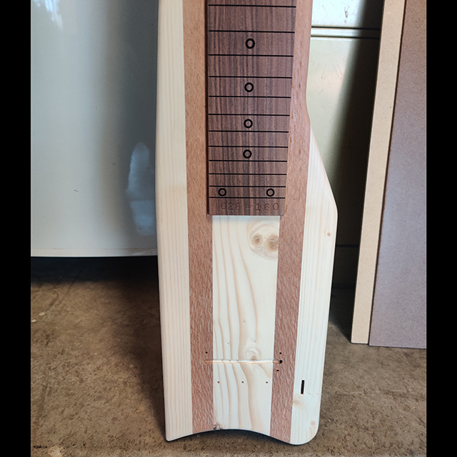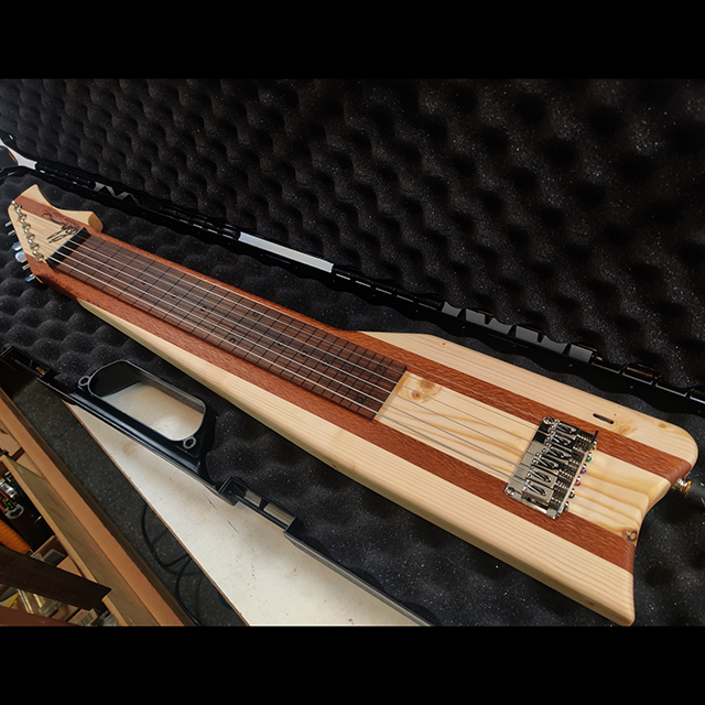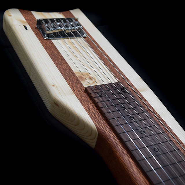 Carved from steadfast pine and shimmering lace wood, this lap steel guitar lived its life on the road from concert to concert, tucked into cases scarred by miles and stage lights. Night after night it sang beneath glowing marquees and roaring crowds, its voice growing bolder with every encore and soundcheck. Each slide of the bar carries the echo of amplifiers, applause, and long highways between venues. A seasoned traveler whose tone was forged not by silence, but by the constant hum of music and motion.