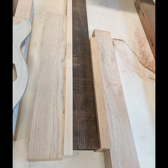 - Reclaimed barn redwood, maple & ash