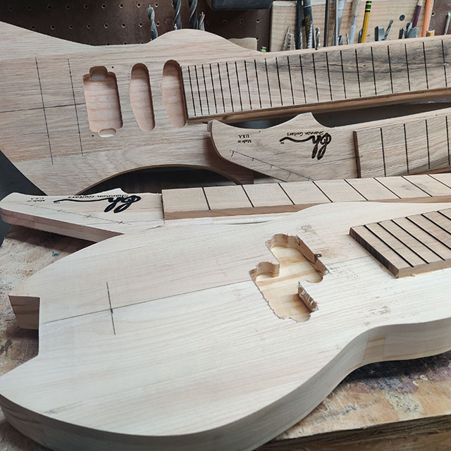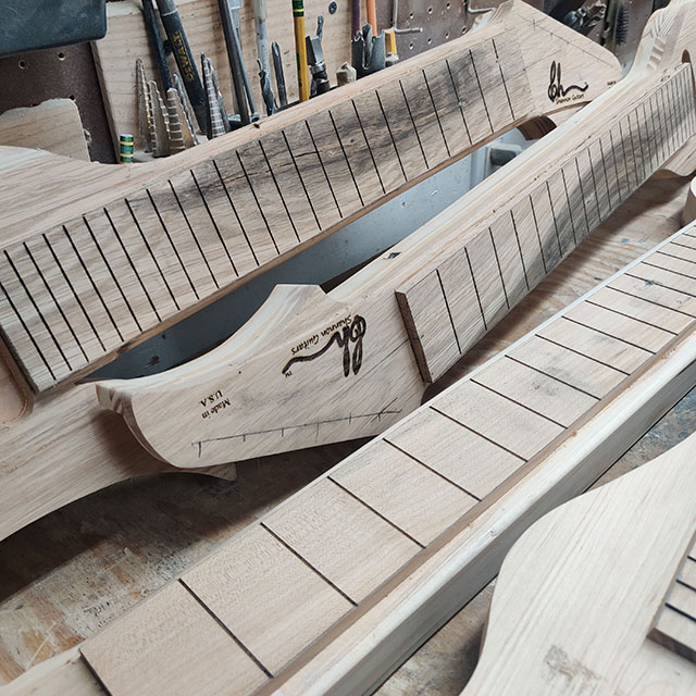 Precision is key to building high quality guitars and lap steels alike. With accurate measuring tools such as calipers, rulers and using everyone’s favorite high school subject geometry, building playable instruments is possible. Not to get into the nitty gritty, but without accurate scale lengths or realistic dimensions, the sound and play-ability of the steels would be impossible.